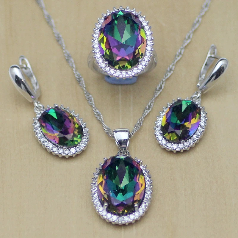 awesome Mystic Rainbow Fire Zircon Jewelry Set Women 925 Sterling Silver Jewelry Wedding Earrings/Pendant/N