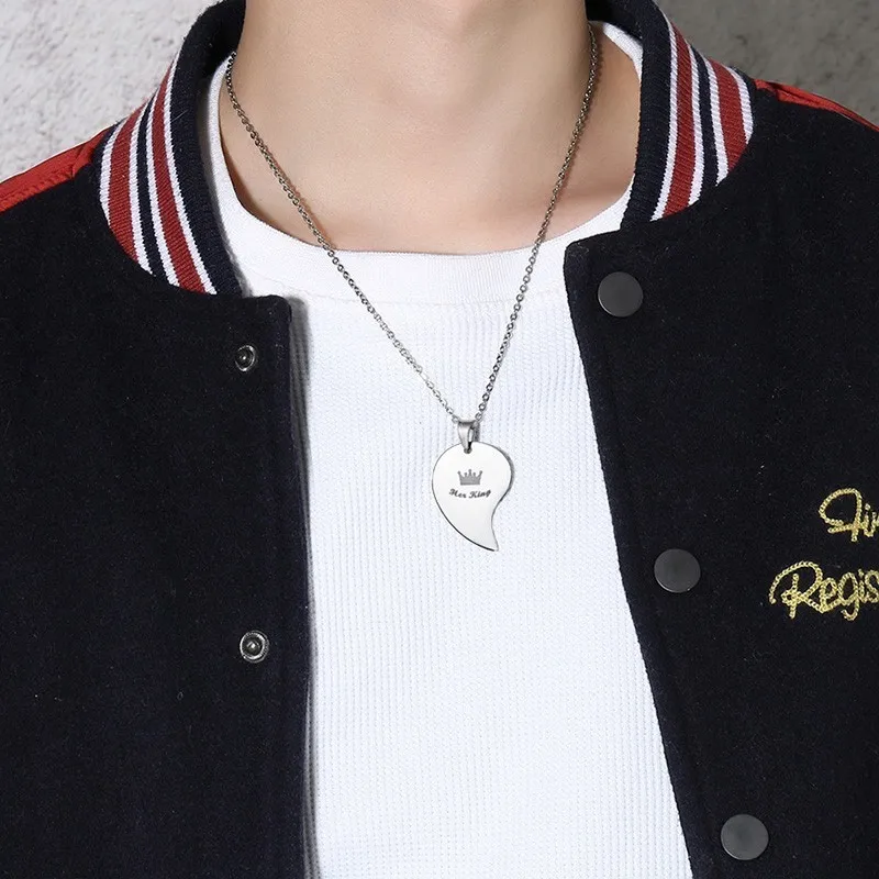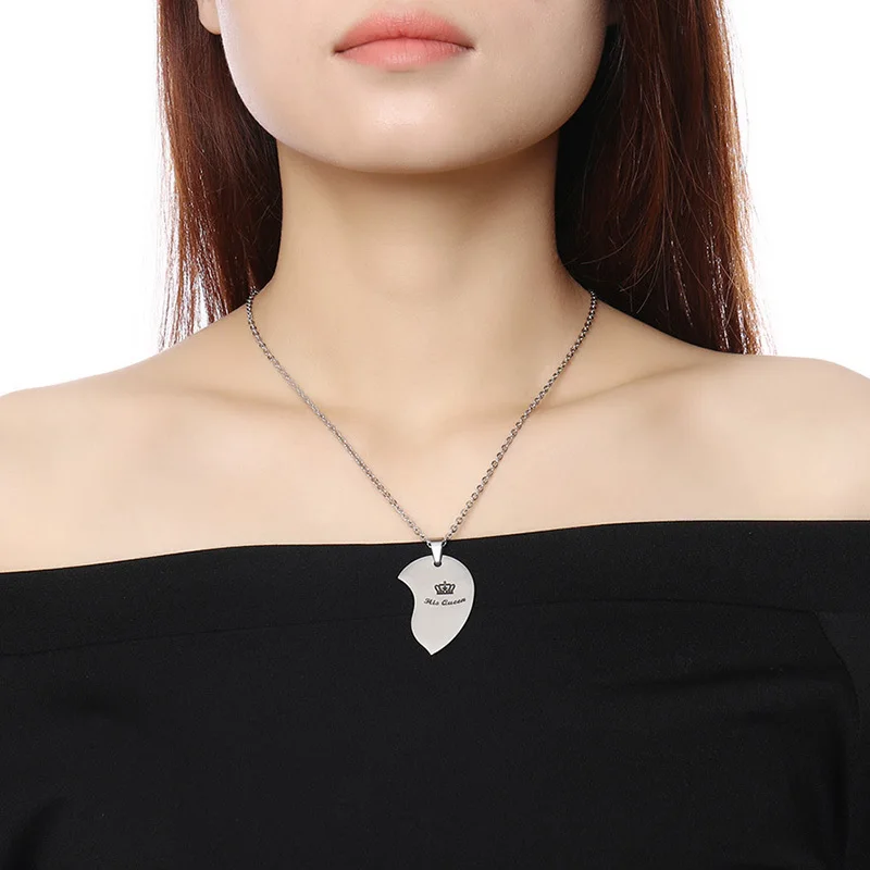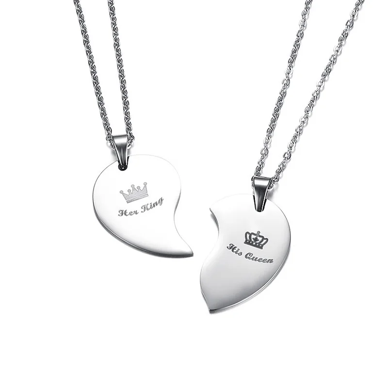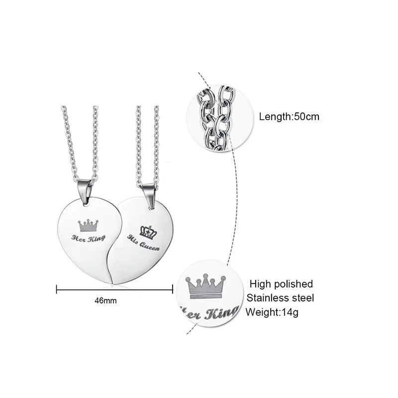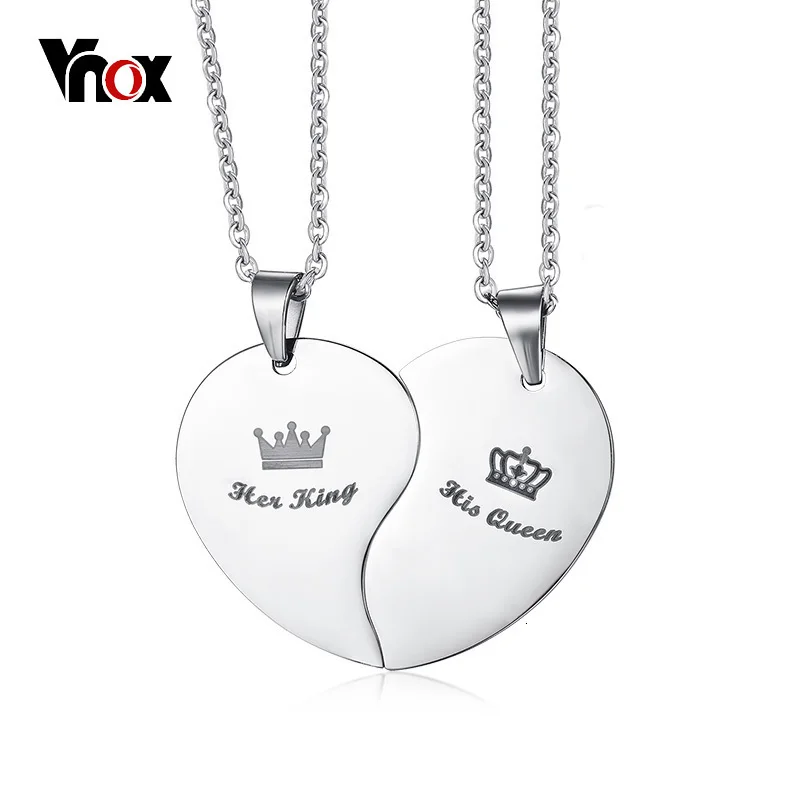 amazing Vnox His Queen Her King Crown Couple Necklace For Women Men Pendant Heart Stainless Steel Lover Wed