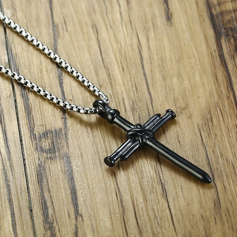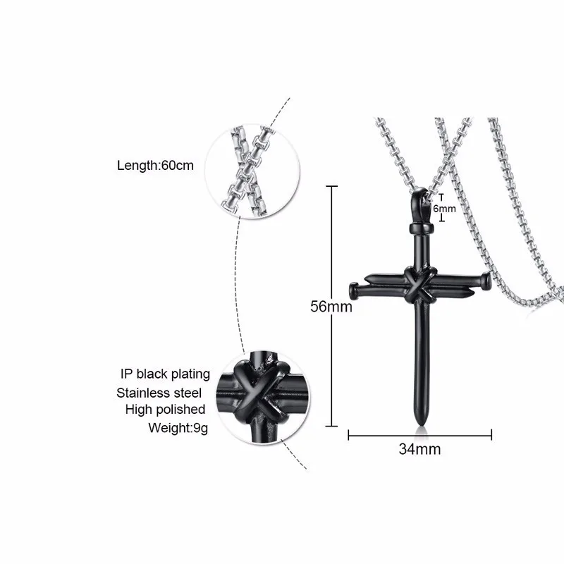 awesome Vnox Unique Nail Cross Pendant for Men Necklaces Stainless Steel Religious Jewelry Punk Christian P