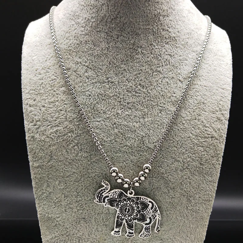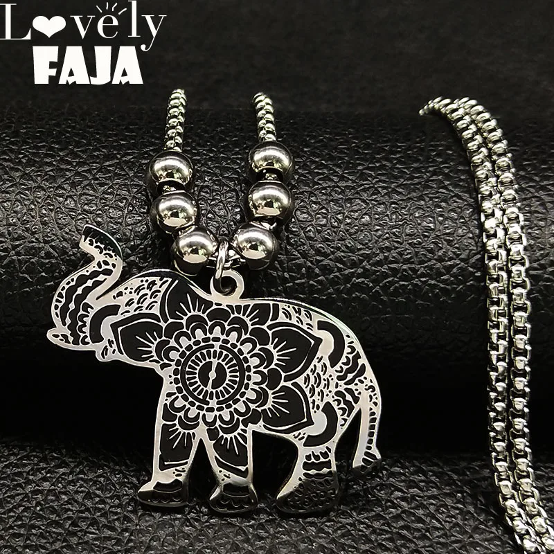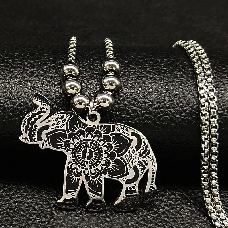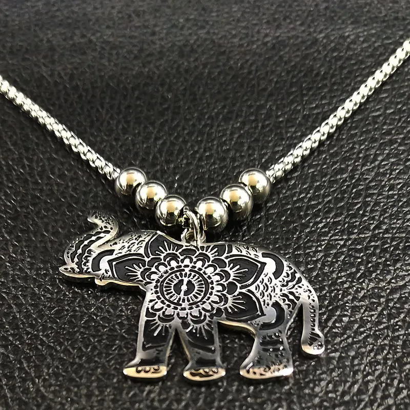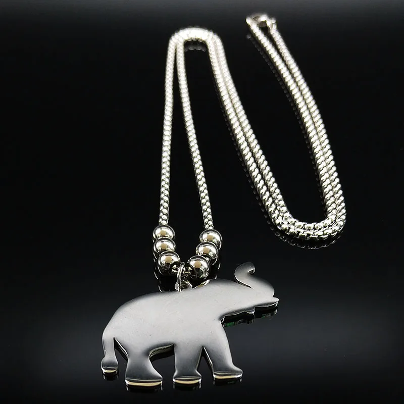 Very best 2019 Fashion Elephant Enamel Stainless Steel Chain Bracelet Women Silver Color Long Statement Neckl