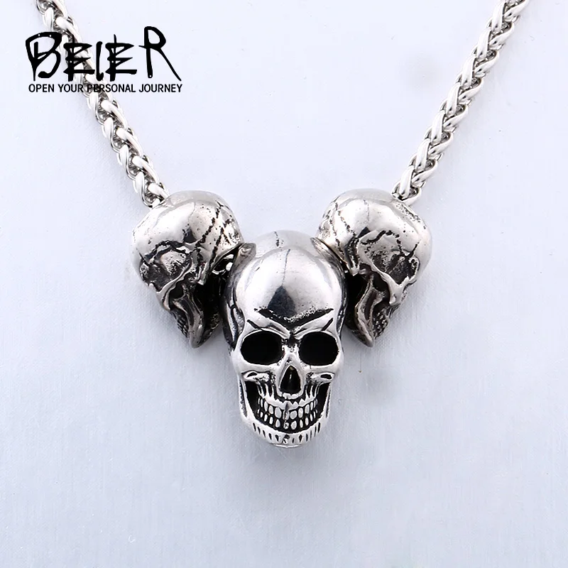 discounted Beier 316L stainless steel Unique design punk skull biker pendant necklace high quality jewelry LLB