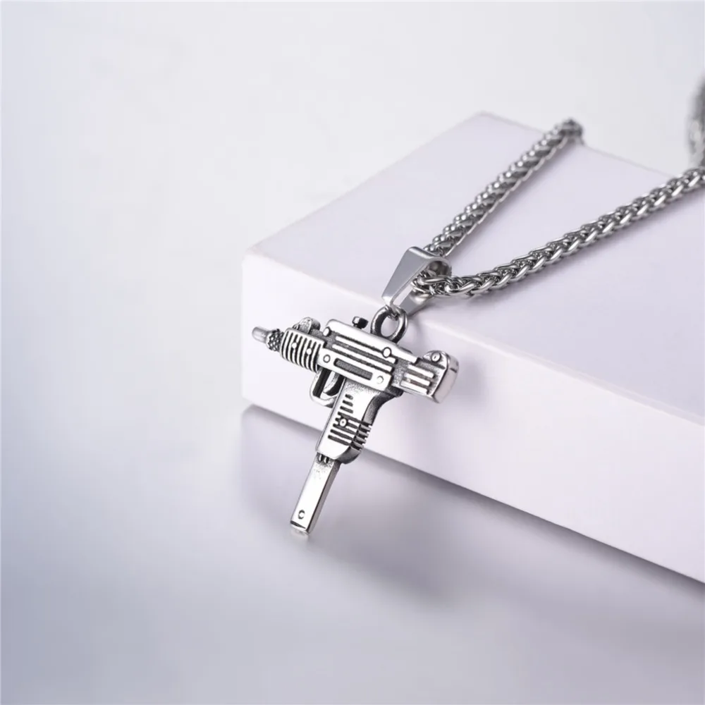 Best U7 UZI GUN Shape Pendant Necklace For Men Hip Hop Jewelry Gold/Black Color Stainless Steel Army Sty