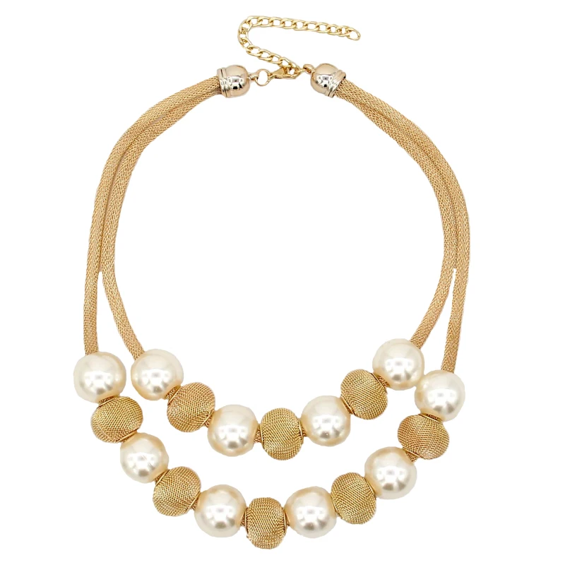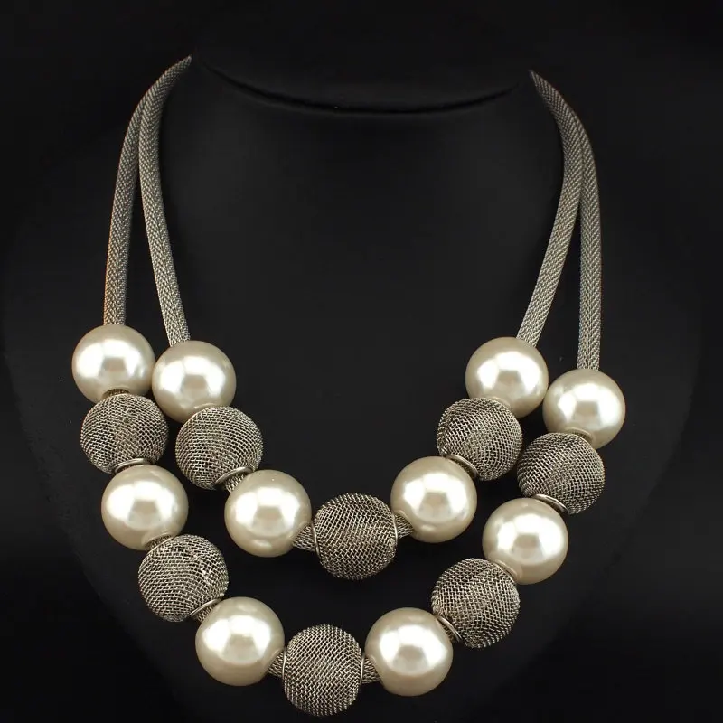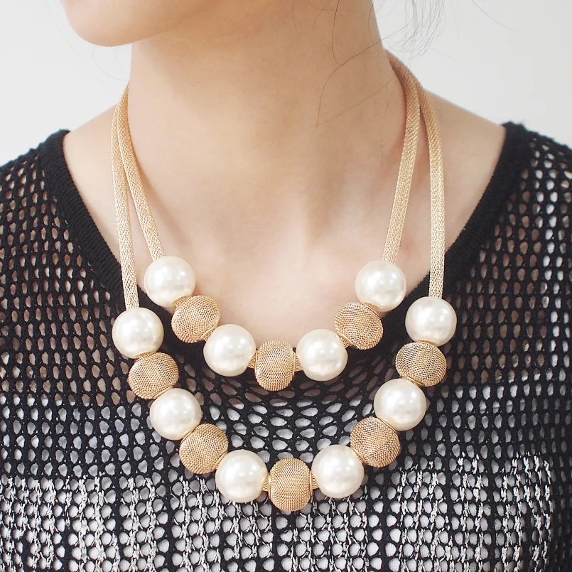 Best UKMOC Boho Fashion Popcorn Chain Simulated Pearl Metal Ball Women Chokers Statement Jewelry Accesso