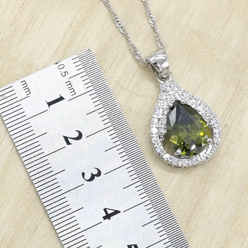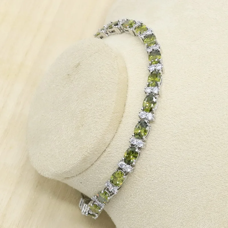 buy 2019 New Olive Green Zircon 925 Sterling Silver Jewelry Set for Women with Bracelet Earrings Neckla