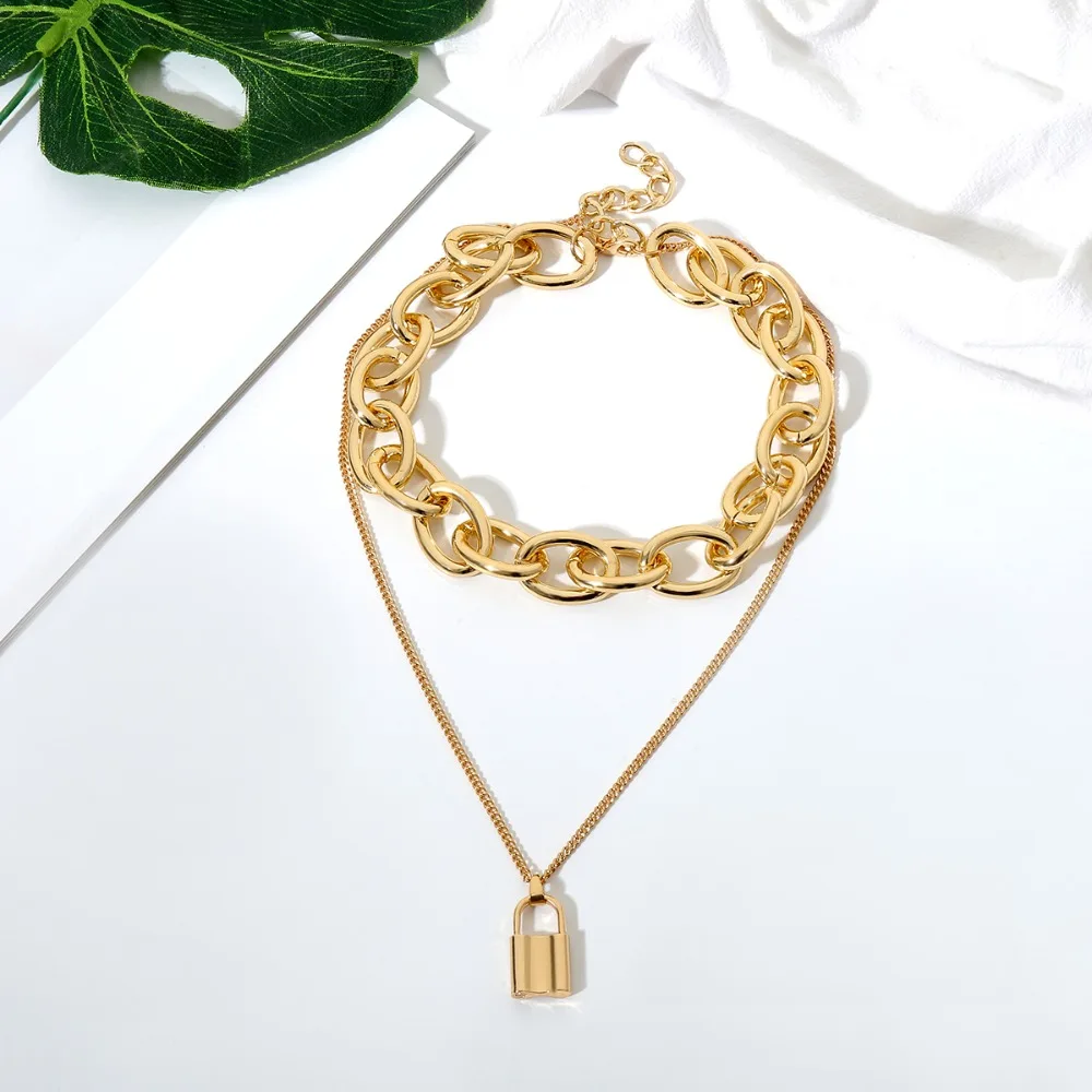 Ideal IngeSight.Z Vintage Multilayer Gold Curb Cuban Chunky Thick Choker Necklace Collar Statement Lock P