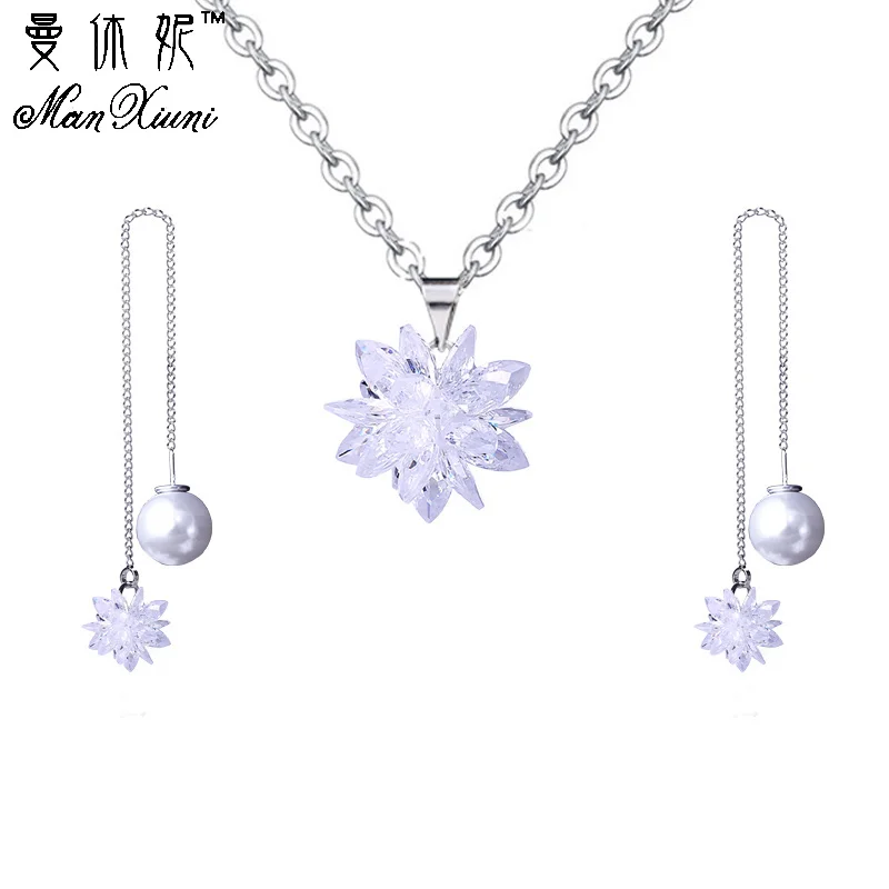 Finest Manxiuni Sets of jewelry Ice Flower Pendant Necklace Earrings Set For women Costume Jewelry Sets We
