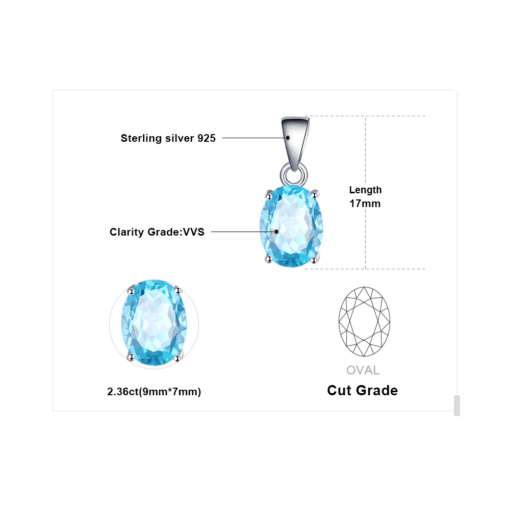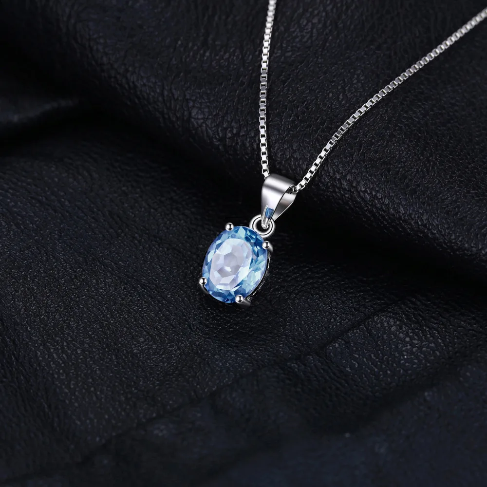 Greatest JewelryPalace Natural Blue Topaz Pendant Necklace 925 Sterling Silver Gemstones Choker Statement Ne