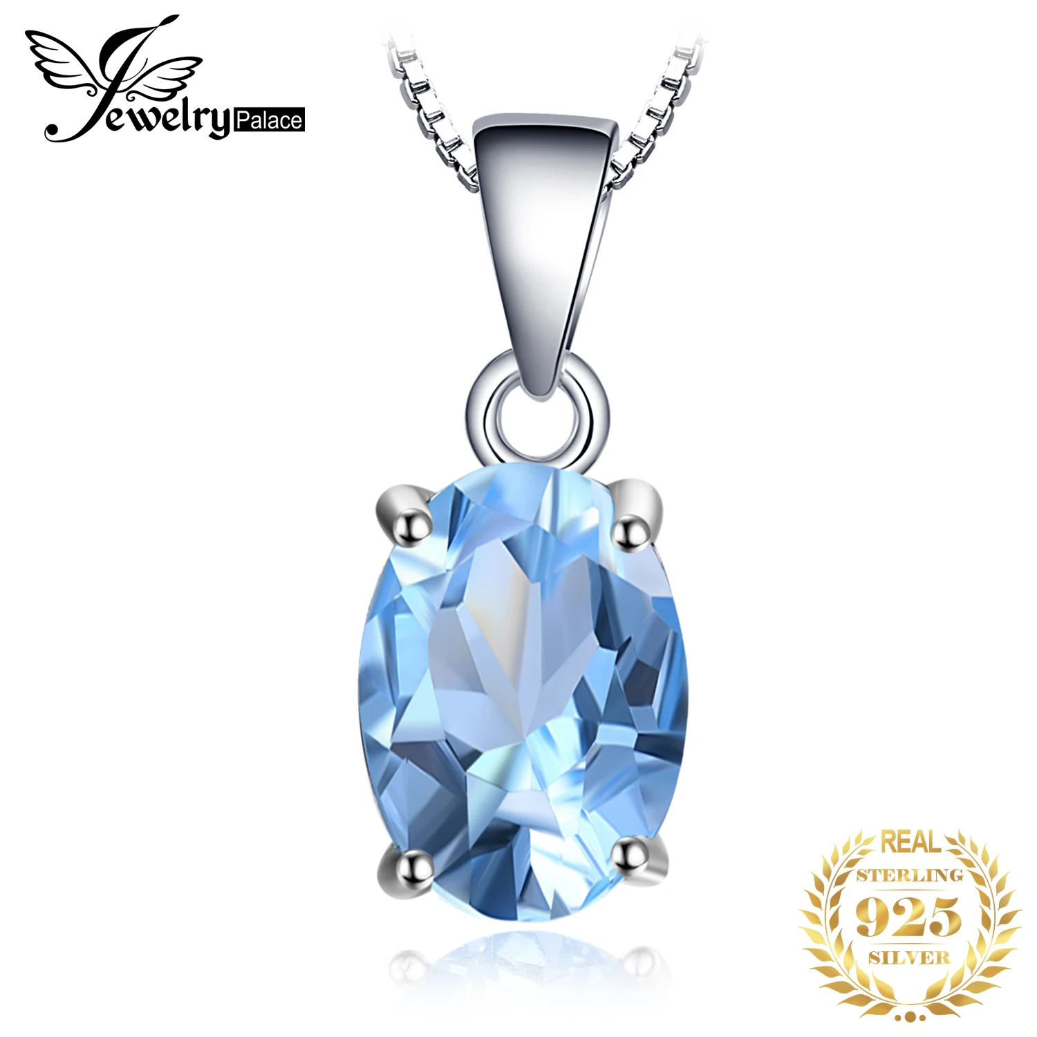 price reduction JewelryPalace Natural Blue Topaz Pendant Necklace 925 Sterling Silver Gemstones Choker Statement Ne