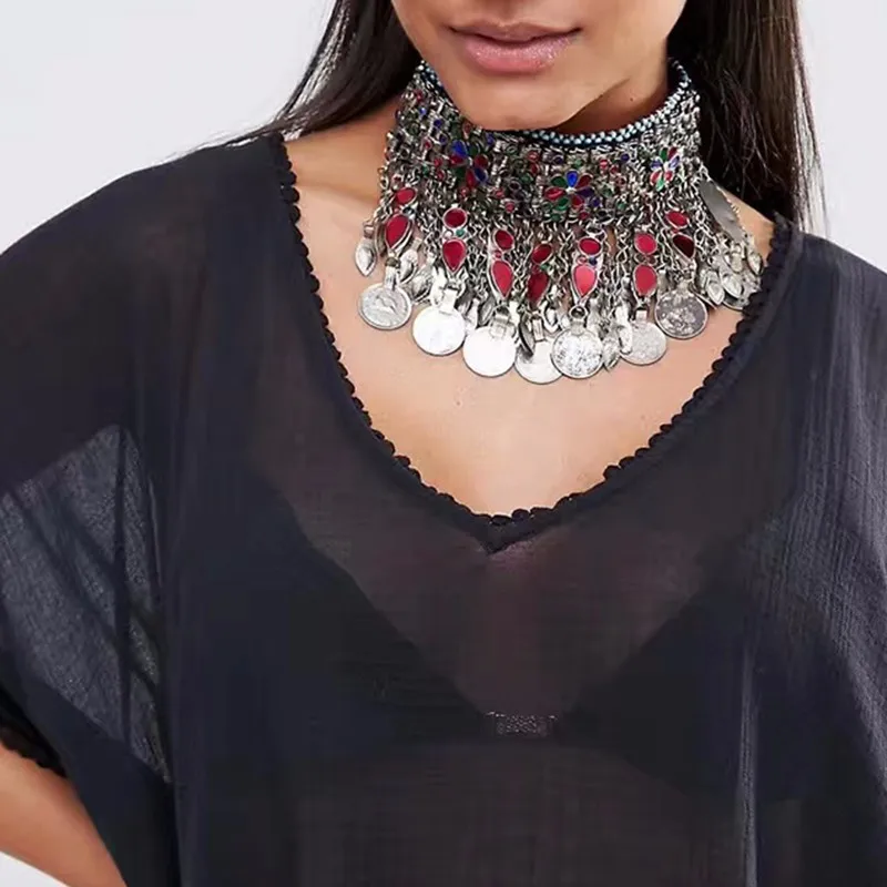 Finest Ztech Collar Coin Necklace & Pendant Vintage Crystal Maxi Choker Statement Collier female Boho Big