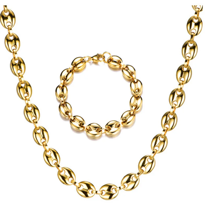 Ideal Men's Necklaces Coffee Beans Chain Bracelets Set Stainless Steel 11CM Gold/Silver Link Chains Hipho