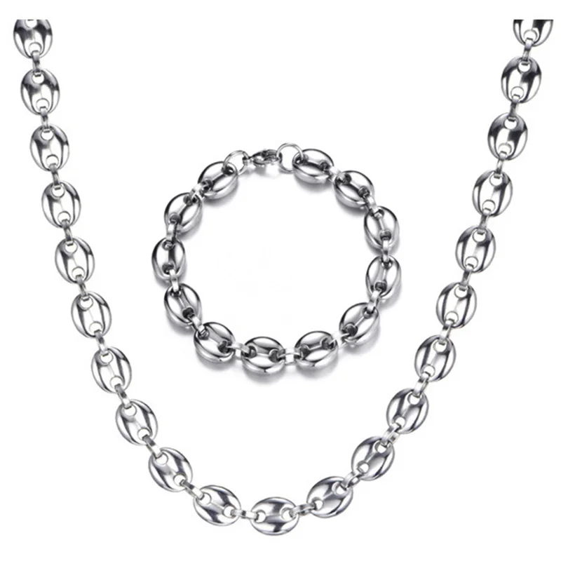 Promo Men's Necklaces Coffee Beans Chain Bracelets Set Stainless Steel 11CM Gold/Silver Link Chains Hipho