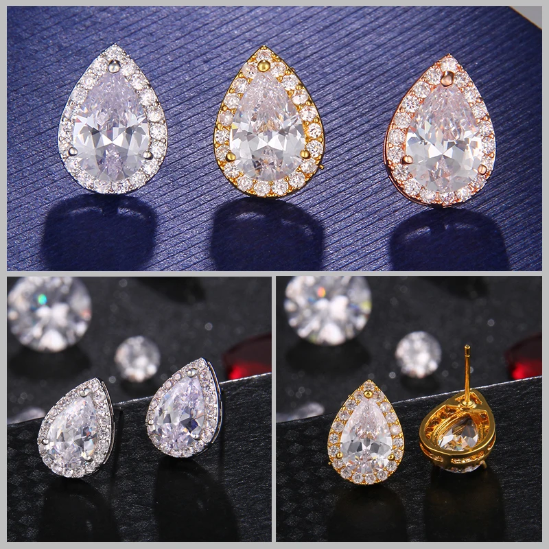 Ideal Nigerian Water Drop Cubic Zirconia Wedding Jewelry Sets inlay Luxury Crystal Bridal Jewelry Set Gif