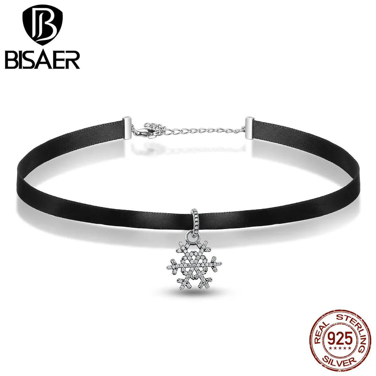 lower price Authentic 100% 925 Sterling Silver choker Snowflake Pendant Black Choker Necklace Women Fashion Jew