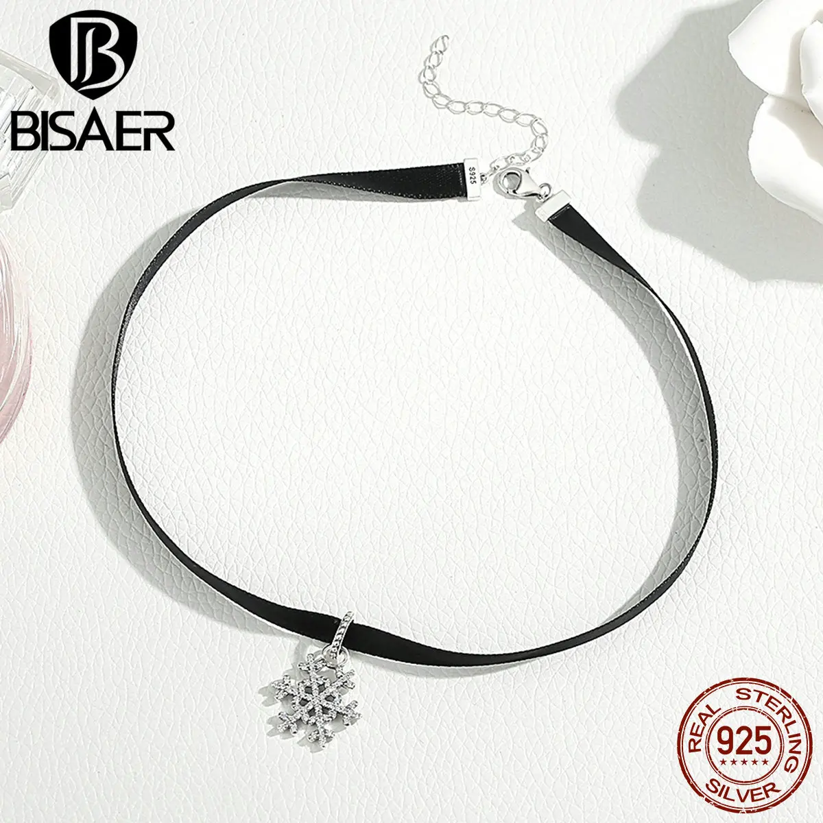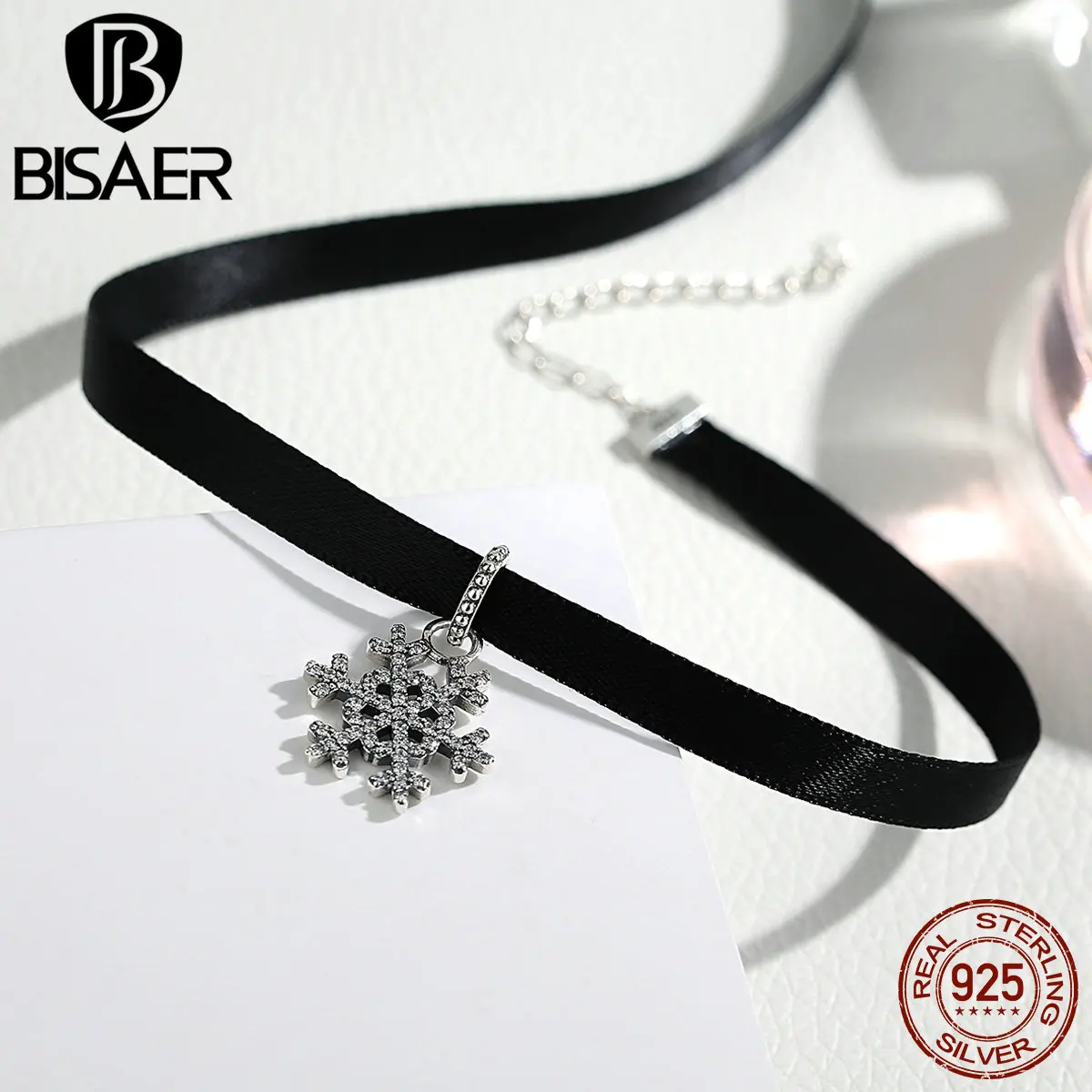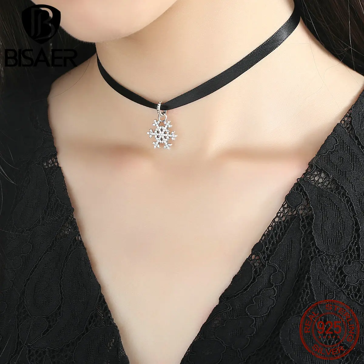 price reduction Authentic 100% 925 Sterling Silver choker Snowflake Pendant Black Choker Necklace Women Fashion Jew