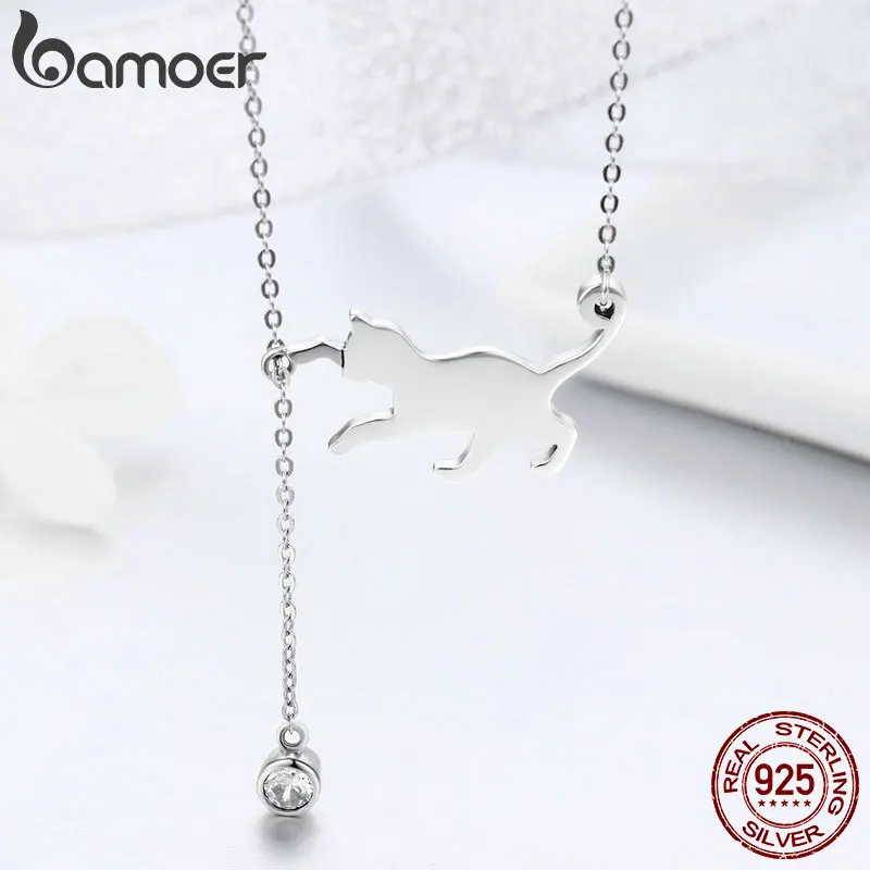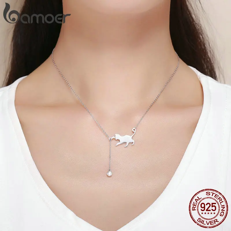 BAMOER Popular Real 100% 925 Sterling Silver Naughty Kitten Cat Women Pendant Necklaces Fashion Sterling Silver Jewelry SCN175,BAMOER High Quality Smooth 925 Sterling Silver Lovely Cat Long Tail Necklaces & Pendants S925 Fine Jewelry SCN032, BAMOER High Quality Smooth 925 Sterling Silver Lovely Cat Long Tail Necklaces & Pendants S925 Fine Jewelry SCN032