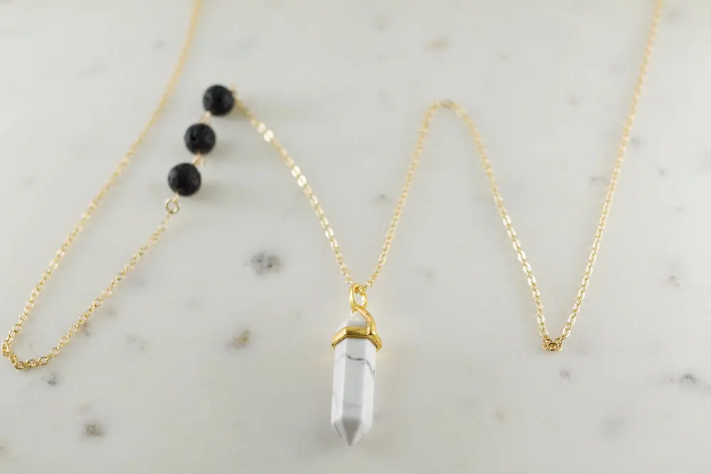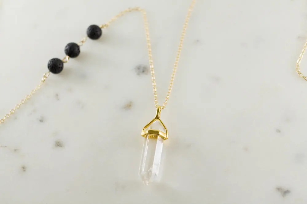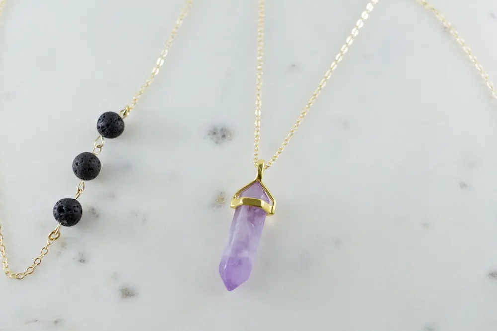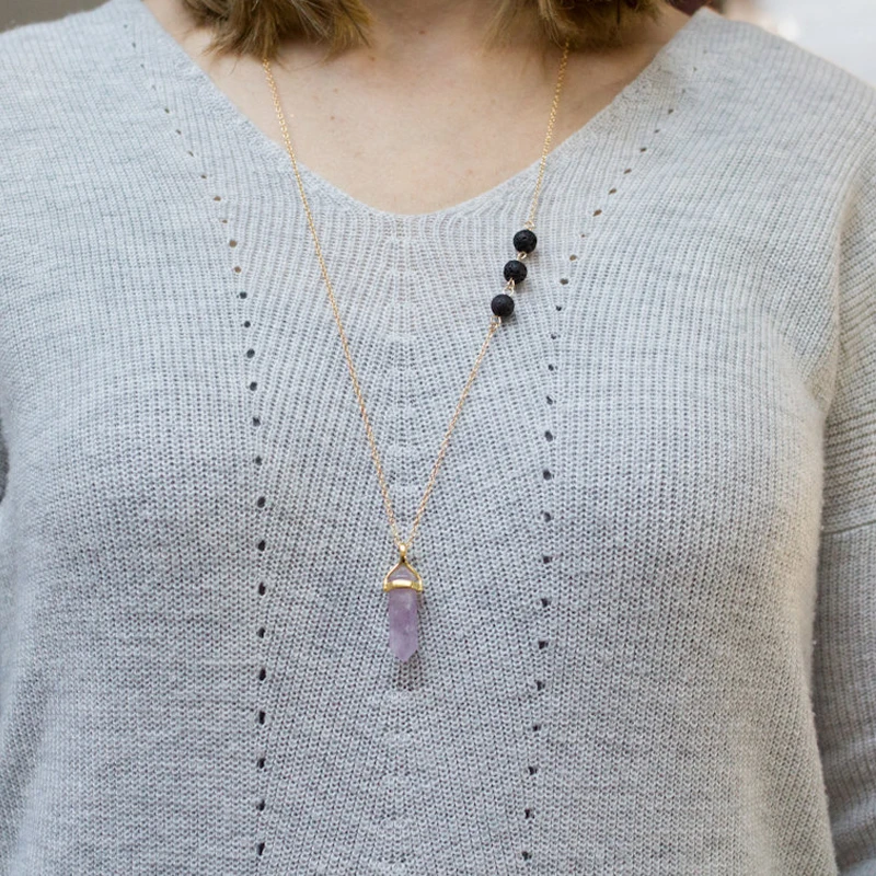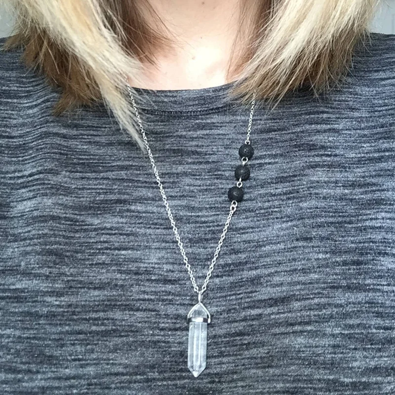 Most effective 1pcs) Lava Stone Essential Oil Diffuser Necklace Aromatherapy Jewelry with Crystal Bullet Natural S