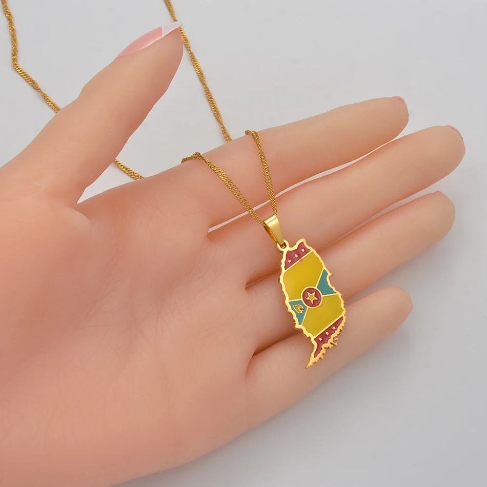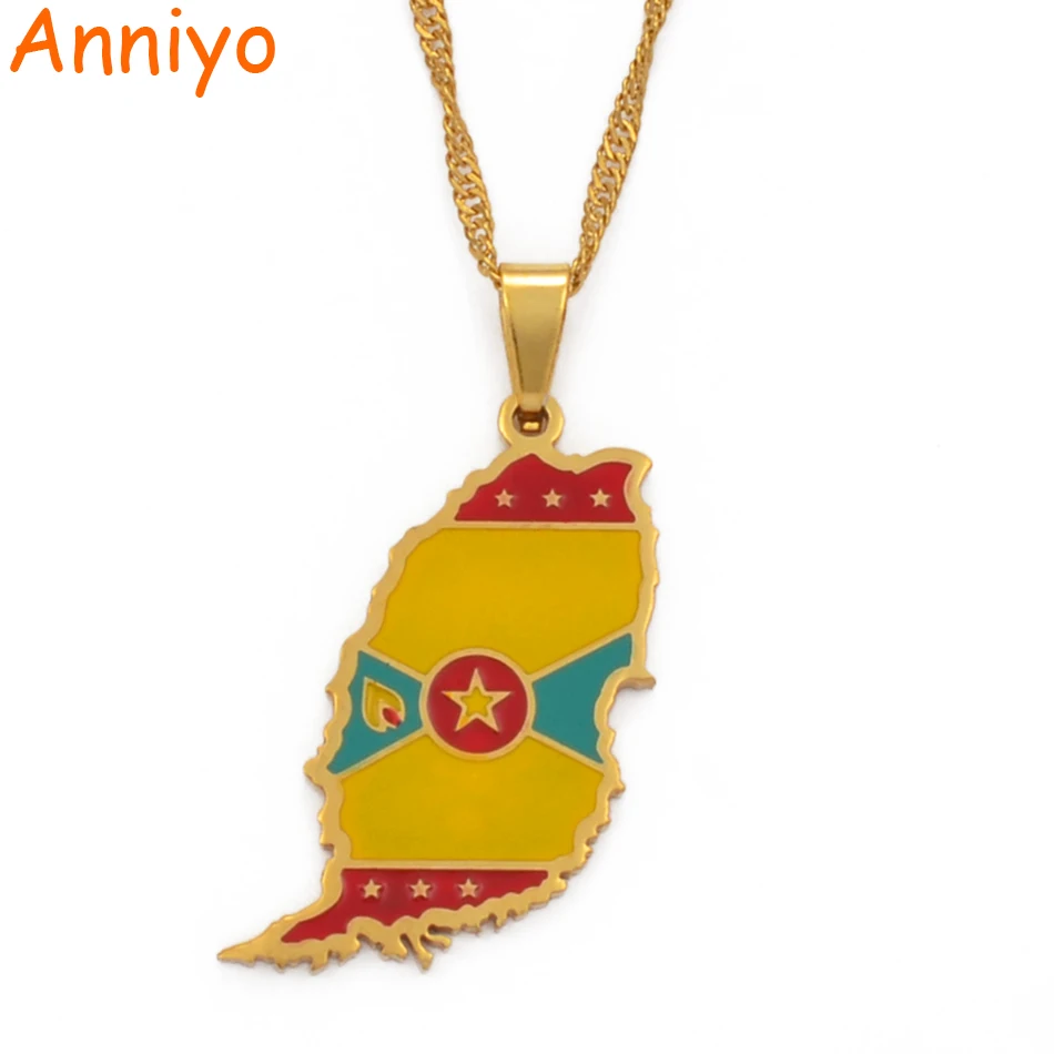discount Anniyo Gold Color Grenada Island Map Flag Pendant and Water Wave Necklaces Jewelry Gifts #098821