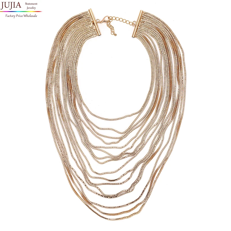 remarkable JUJIA Luxury metal chain choker Maxi Statement Necklace 2019 Multilayer Wedding chokers Collier Fas