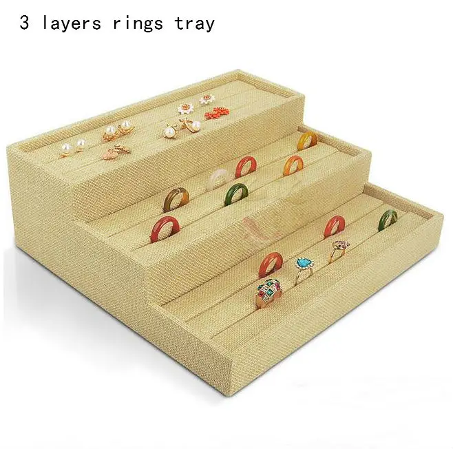discounted New Arrival Wrapped Linen Jewelry Display Jewellery Tray Ring Holder Necklaces Organizer Bracelets