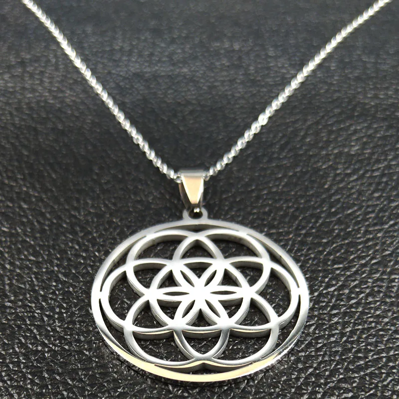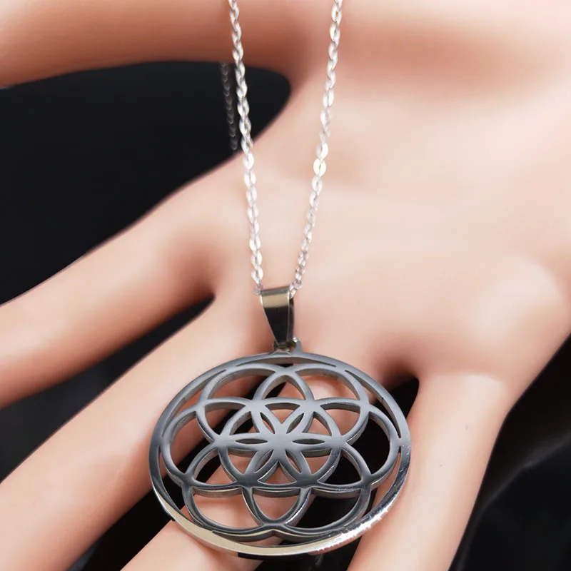 price reduction 2019 New Fashion Flower of Life Stainless Steel Chain Necklace for Women Silver Color Necklace Jewe