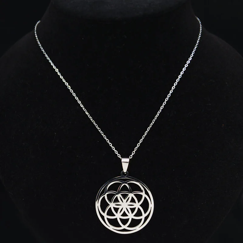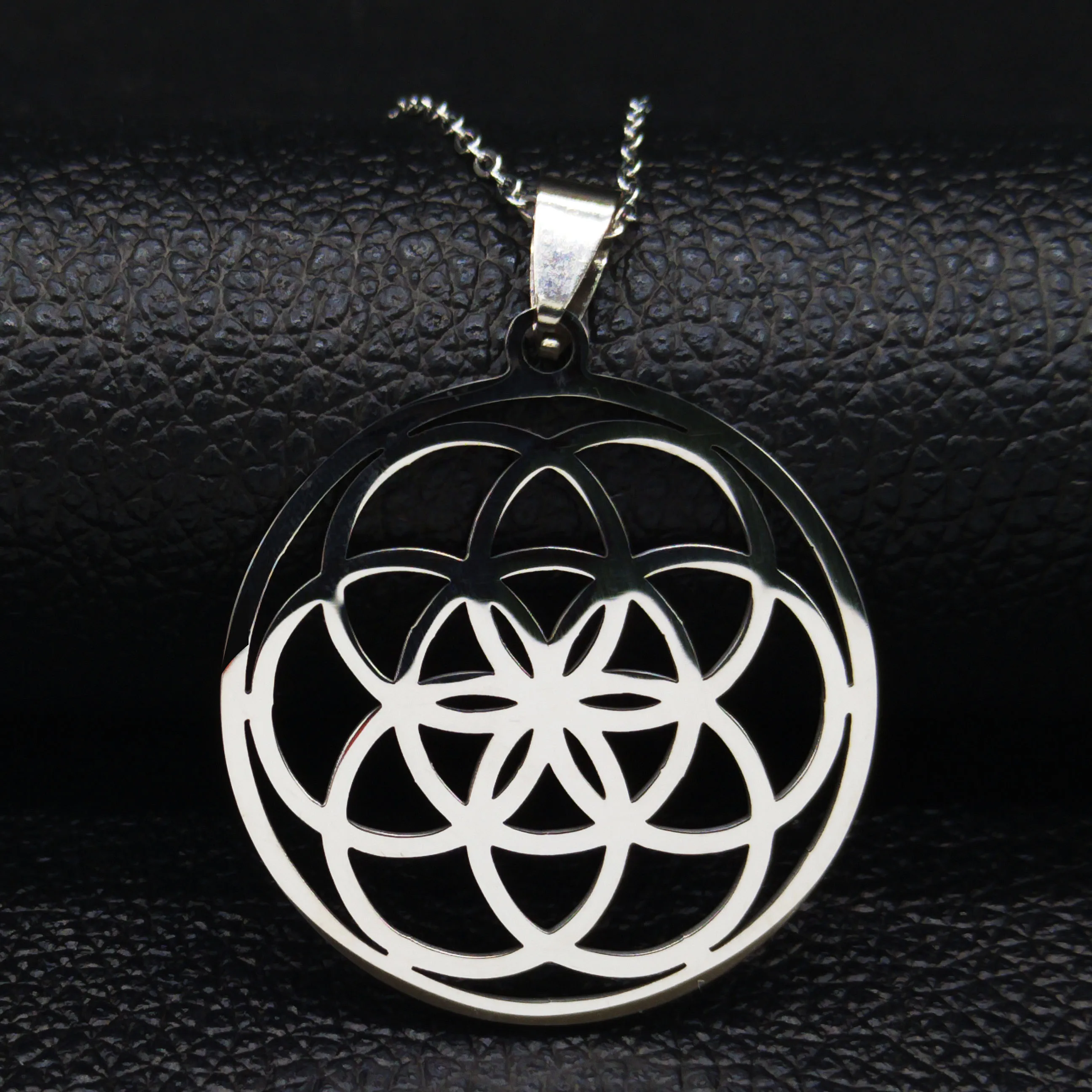 2019 Fashion Round Stainless Steel Necklace Women Black Flower of Life Choker Necklace Jewelry acero inoxidable joyeria B18200,2019 Fashion Flower of Life Stainless Steel Statement Necklace for Women Silver Color Necklaces Pendants Jewelry colgante N19452, 2019 Fashion Flower of Life Stainless Steel Statement Necklace for Women Silver Color Necklaces Pendants Jewelry colgante N19452